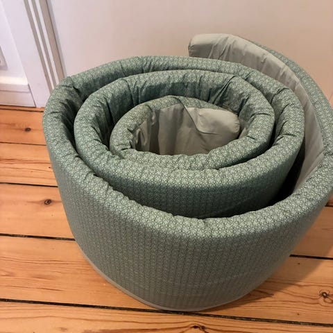 Betrækket på sengekanten kan tages af med lynlåsen på den ene langside, således at skumpuden er nem at få ud og ind, og betrækket kan vaskes.
