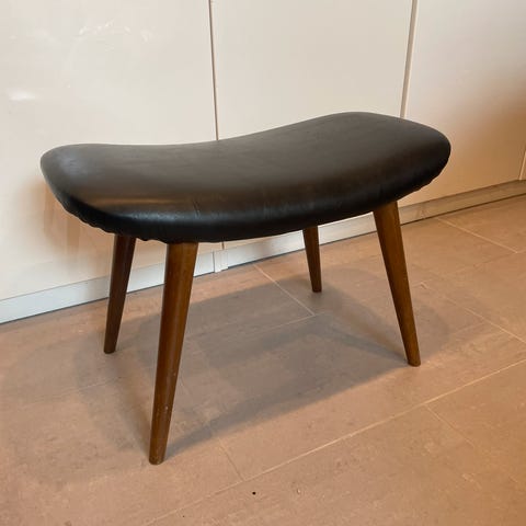 Meget stilet og lækker hvid fodskammel i (hvad jeg tror er) emitteret læder. Rigtig god stand men med lidt brugsspor. Designer ukendt men jeg tror den er fra 70erne eller 80erne.