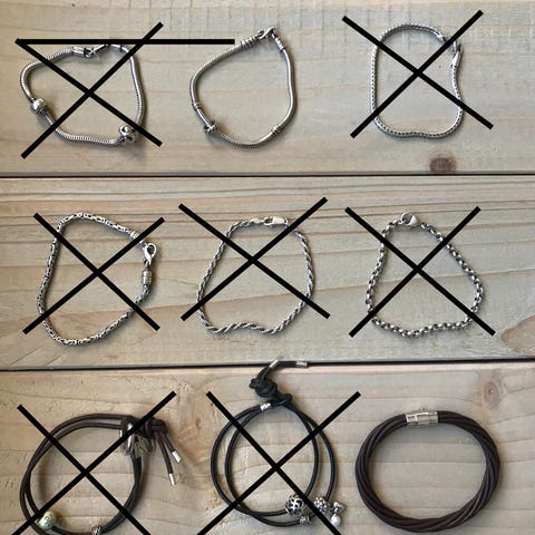 Jeg sælger to forskellige armbånd, et i sølv og et i læder, da jeg ikke får dem brugt. Der er bl.a. nogle fra mærket Spinning og mærket Pandora. De armbånd med kryds over er solgt.