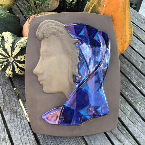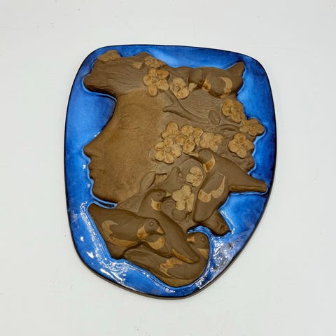 Klassisk relief fra Aluminia, signeret Johannes Hedegaard. Måler 33x25 cm. I god stand.