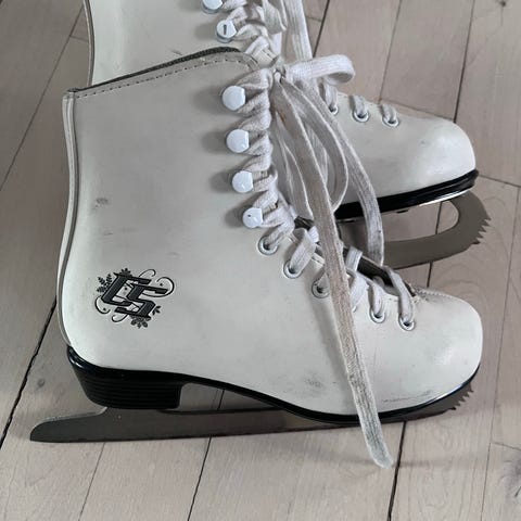kunstskøjter i størrelse 35 i hvid farve. Klassisk model med høj skaft og snørelukning,