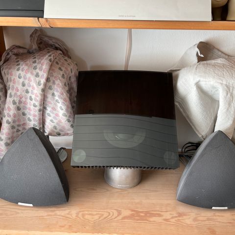 Bo radio med højtaler 2 fjernbetjeninger og metalskinne til ophæng. Låsen til cd virker.