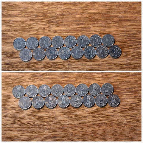 5 ØRE 1973 - 1988 KOMPLET 16 Stk! Margrethe II. Prisen er for dem alle! 5 Øre 1973 - 1988 Margrethe II 1973-1988 Copper clad iron • 1.6 g • ⌀ 15.5 mm KM#859 Porto 25kr. Op til 100gram!