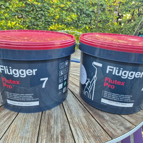 Jeg sælger 2 spande Flügger Flutex Pro 5 vægmaling i Råhvid fordi jeg købte for meget. Malingen er en professionel akrylbaseret vægmaling der er egnet til indendørs brug på vægge og lofter.