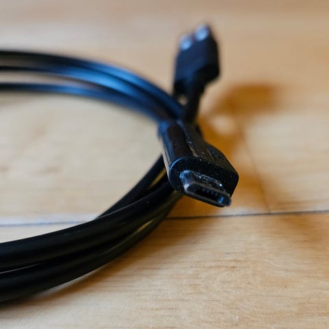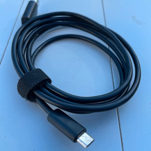 150 cm lang ledning. Device med USB micro B udgang kan hermed lades direkte i stikkontakt.
