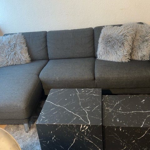 To sofaborde fra jysk i sort marmor look. Et år gamle. Byd