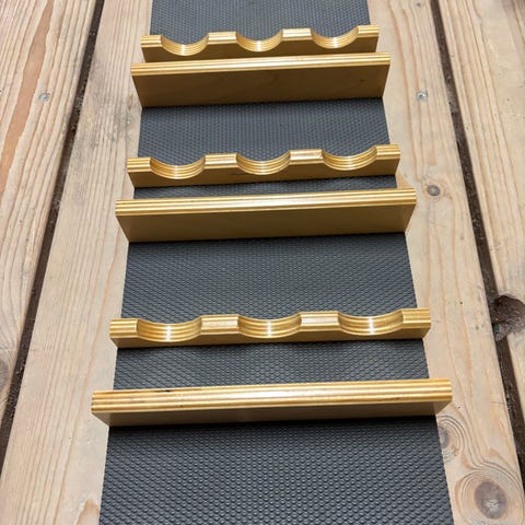 Hver hylde er til 5 krydderiglas ved normal størrelse. Der er 4 hylder på hver, altså til 20 glas.