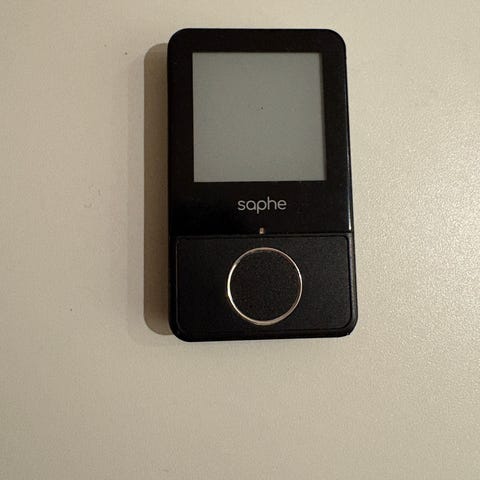 Saphe Drive trafikalarm i sort. Enheden forbindes via Bluetooth til smartphone og bruges til advarsler om trafikforhold. Enheden har display og betjeningsknap på forsiden. Velegnet til montering i bil som hjælp til at få information om f.eks. kø, ulykker og fartkontroller afhængigt af app-funktioner.