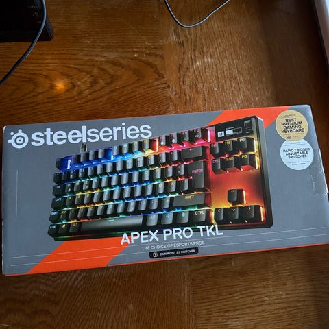 Sælger SteelSeries Apex Pro TKL tastatur da jeg simpelthen ikke rigtig har fået det brugt. Det står flot, og har ikke nogle brugsspor udover en lillebitte smule støv af at stå til opbevaring.