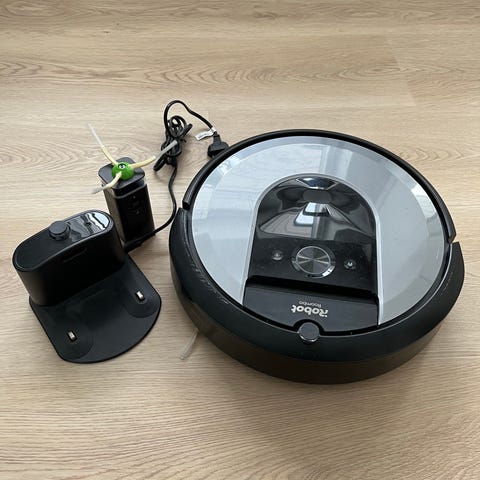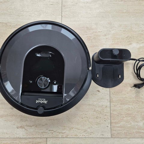 iRobot Roomba j7 robotstøvsuger i grå og sort. Enheden er rund og leveres med ladestation med strømstik. Undersiden har to gummibørster og sidebørste til opsamling af støv og snavs. Robotstøvsugeren er egnet til automatisk støvsugning af gulve i hjemmet og kan anvendes på hårde gulve og tæpper efter producentens anvisninger.