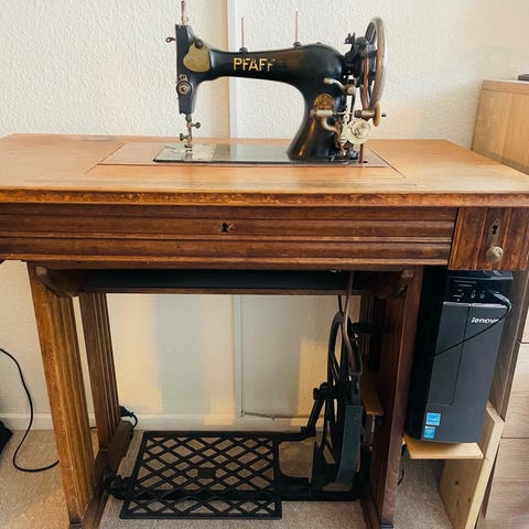 Tilbehør til symaskine, retro bord Pfaff original, retro og kraftig