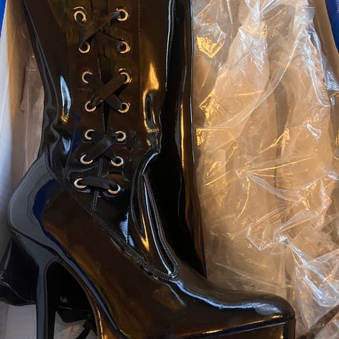 Flotte lakstøvler med lynlås hele vejen ned bagpå.