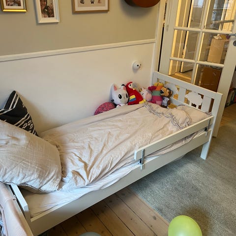 Rigtig fin seng, brugt lidt. Fra IKEA KRITTER nypris uden madras 769 kr. måler madras str 70x160 cm. Selve sengen måler L 165 cm og B 75 cm. Hvis ønskes, medfølger madras. Sengen er skilt ad, så den nemt kan transporteres.