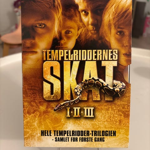 Tempelriddernes skat I- II -III DVD boks med alle tre film i serien samlet i ét etui. Indeholder de danske spillefilm Tempelriddernes skat, Tempelriddernes skat II og Tempelriddernes skat III på DVD. Velegnet til hjemmebrug på standard DVD-afspillere.