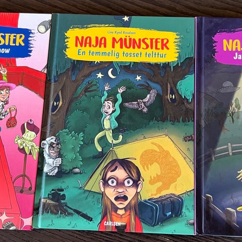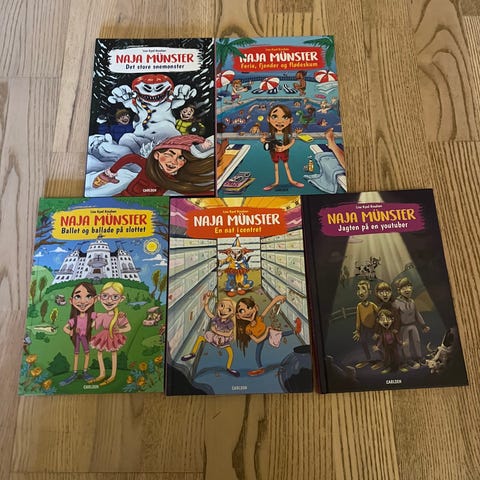 Naja Münster bogsamling med flere illustrerede børnebøger i samme serie. Bøgerne er velegnede til højtlæsning og selvlæsning for børn. Farverige omslag og illustrationer med motiver fra Naja Münster-universet. Trykt på papir i almindeligt bogformat.