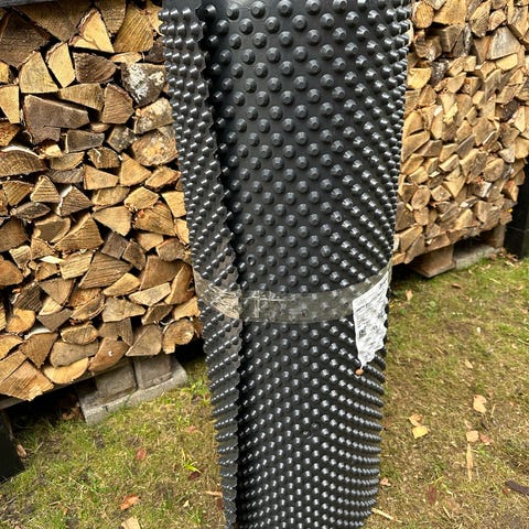 Grundmursplade som jeg har til overs efter byggeri, jeg har brugt knap 6 meter af rullen så der er lidt over 14 meter tilbage.