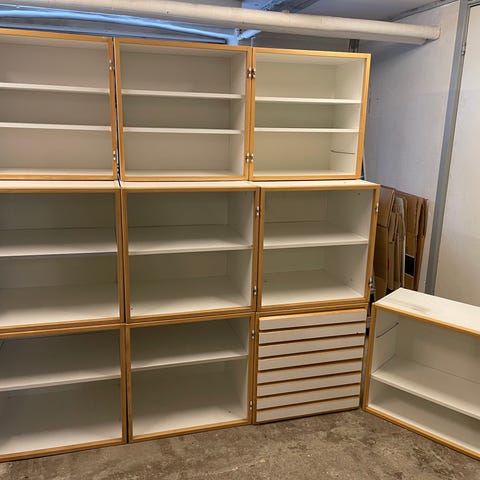 50 cm skab med skuffer og et køleskabsmodul med låge 60 cm - skabene er 220 høje - hele skabet er 120 inklusiv sidebeklædning mm