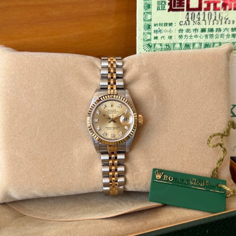 Rolex dameur 26mm med blå skive og stållænke. Købt i 2009.