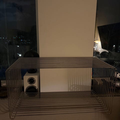 Montana Verner Panton reolmodul i metal. Modulopbygget kubisk reol med åbent, stangformet design, der kan bruges fritstående eller som del af en større opbevaringsløsning. Egnet til opbevaring eller som sidebord i stue, kontor eller andre rum.