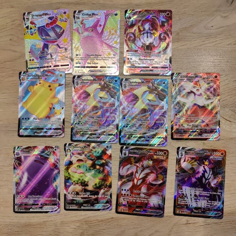 Pokémon samlekort GX og VMAX holo sæt med Pikachu og Rowlet