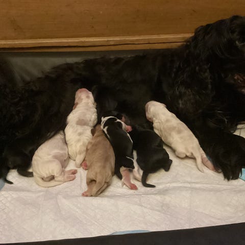 Hvalpene er 4 uger gamle – aktive, kærlige og meget kontaktsøgende. De vokser op i hjemlige omgivelser, er vant til hænder og har et roligt, tillidsfuldt temperament.