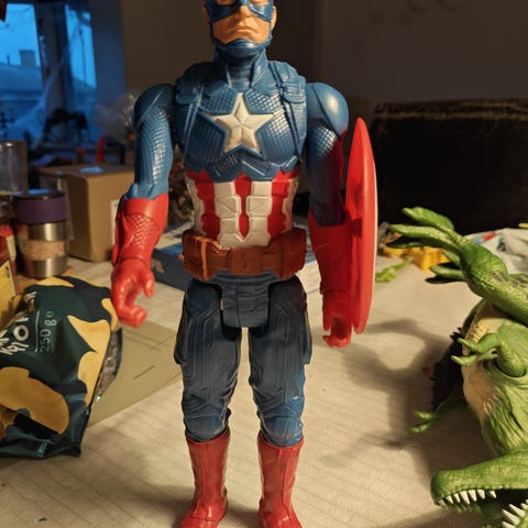 Marvel actionfigur af Superman i plastik. Figuren er iført blå dragt med rødt kappe og røde støvler samt gult bælte. Egnet som legetøj til børn eller som samlerfigur. Figuren er fremstillet i hård plast med bevægelige led i arme og ben afhængigt af model. Størrelse og præcis serie er ikke angivet.