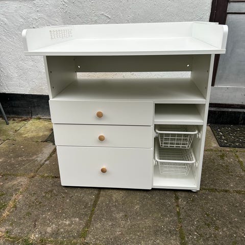 Puslebord og kommode af mærket Småstad fra IKEA. Har enkelte brugsspor, men det fungerer fuldstændig upåklageligt.