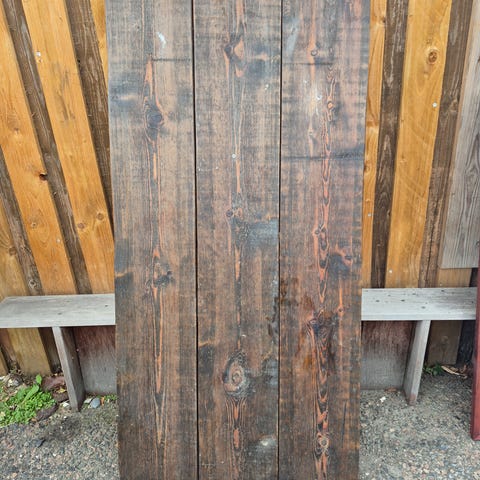Flot bordplade lavet af tre gamle gulvbrædder.