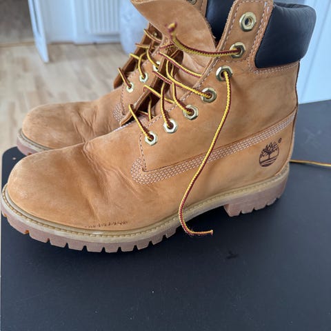 Timberland støvler i størrelse 40. Klassiske snørestøvler i brun nubuck-læder med kraftig gummisål og polstret skaftkant. Velegnet som hverdagssko og til udendørs brug.