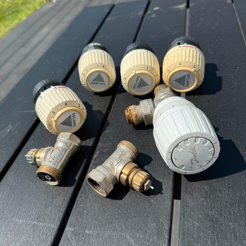 Brugte termostater, der fungerer som de skal. To er gulnede, men plastic er intakt.