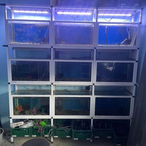 Akvariereol 16 x 80L akvarier