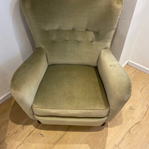 Lænestol/Drejestol/Loungestol,med orange betræk,på drejebar firpasfod i stål.