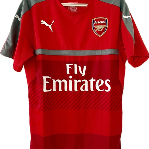 Puma Arsenal fodboldtrøje i sort med gule detaljer. Trøjen har Arsenal-klublogo på brystet samt sponsortryk på fronten. Fremstillet i let materiale egnet til fodbold og anden sport. Kortærmet model med rund hals.
