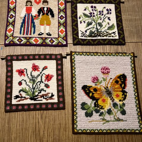 Tekstilerne er egnede som dekoration, f.eks. til indramning eller som del af boligindretning med dansk tema.