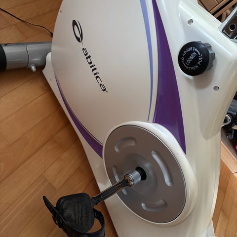Abilica X-Spin 3.0 motionscykel. Stationær træningscykel med justerbart sæde og styr samt remtræk. Egnet til indendørs konditionstræning og cykeltræning i hjemmet. Oprindelig nypris ca. 6.500 kr. Købt i juli 2024. Står som ny. Underlagsmåtte medfølger. Sælges pga. flytning.