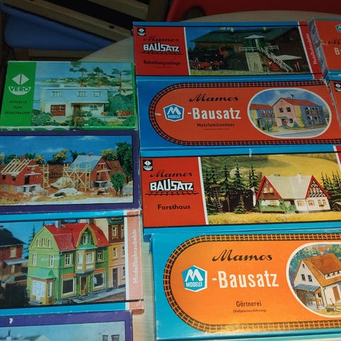 POLA 166 - byggesæt byhus-nedbrydning/ruin - patineret - vedlagt 1 Wiking gravko - arealmål: 240x125mm - højde: 145mm - Meister-Modell - skala 1:87 - HO.