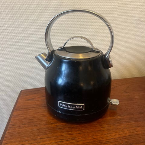 KitchenAid elkedel i rustfrit stål. Elkedlen har et klassisk kedeldesign med håndtag øverst og tud i siden. Materialet er børstet rustfrit stål med sorte detaljer på håndtag og låg. Velegnet til opvarmning af vand til te, kaffe og madlavning i køkkenet.