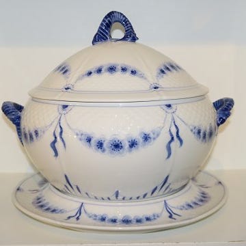 Bing & Grøndahl Empire store suppeterrin med tilhørende underbar. Terrinen har låg med håndtag og to sidehanke. Velegnet til servering af supper eller varme retter ved borddækning.