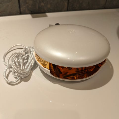 Le Mini Macaron LED neglelampe til hærdning af gelneglelak. Medfølgende USB-kabel til strømtilslutning samt opbevaringspose i lyserød (snoren mangler)