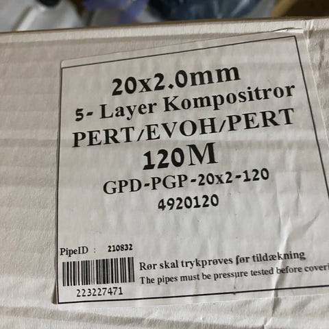 120 m uanbrudt rulle med Ø20 varemerør sælges