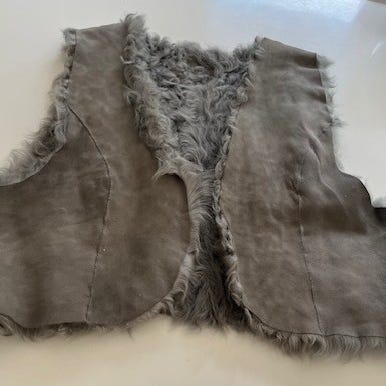 Fin lammeuldsvest, størrelse L. Jeg ved ikke om ruskindet er ægte, det virker ægte. Kun brugt en gang og hængt i skabet siden. Fra røgfrit hjem og opbevaret varmt og tørt.