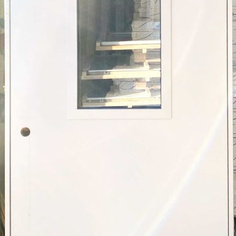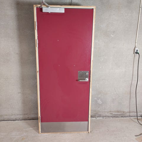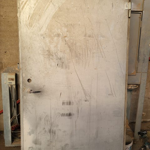 Branddør EL60 i stål, med låsekasse og håndtag og dørlukker