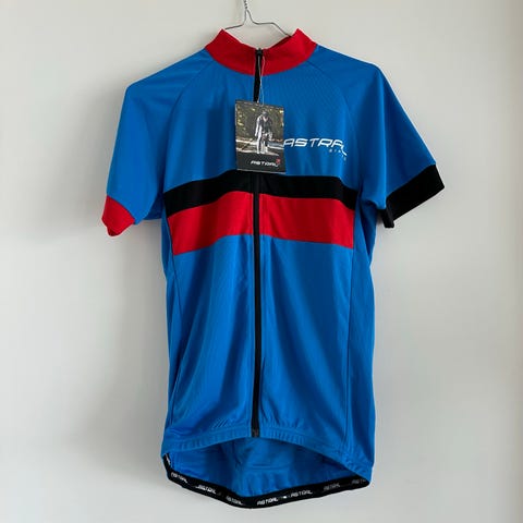 Super.natural (Gravel) cykeltrøje til herrer i størrelse M (ikke slimfit og stor i størrelsen) Trøjen er i grøn med blå kontrastfelter ved bryst, ærmer og krave. På brystet er der Super.natural-logo, og på ærmet et rundt cykelmærke med teksten "Leave the roads and take the trails". Bagsiden har 3 åbne lommer og en lynlåslomme. Brugt én gang. Sælger den da den er for stor til mig.