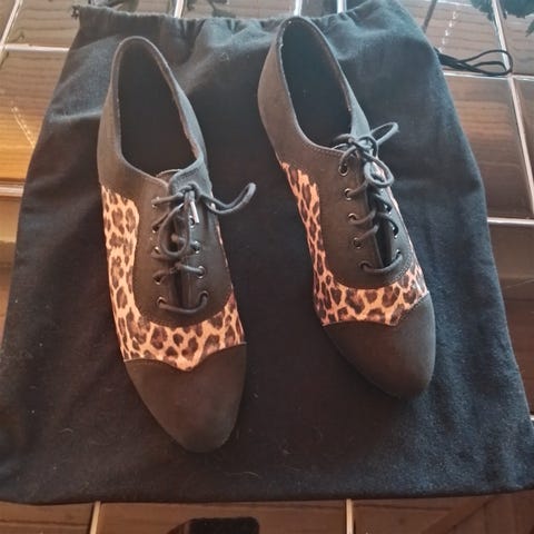 Orgelsko unisex str 37 fra Ray Rose i ruskind og cowboy stof. Hæk: 3,5cm. Skoene er i original skopose og skotske. Sælges billigt.