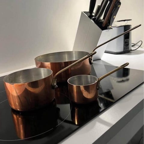 Kobber gryde- og kasserollesæt rustfrit stål indvendigt