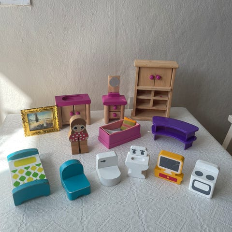 Fine dukkehusmøbler sælges samlet for 80 kroner. Ingen brugsspor. Fra røgfrit hjem og opbevaret varmt og tørt.