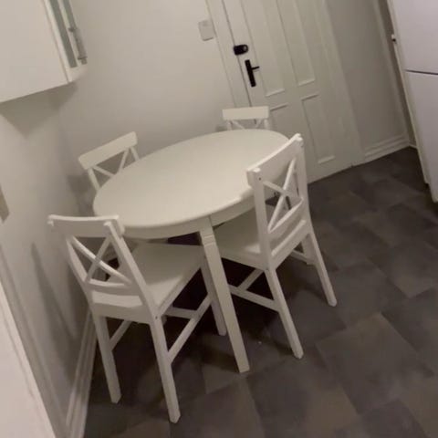 Bordet er brugt og fungerer fint, men har en tydelig, lang ridse i bordpladen samt almindelige brugsspor. Det er kun kosmetisk og påvirker ikke stabilitet eller funktion – derfor er prisen sat derefter.