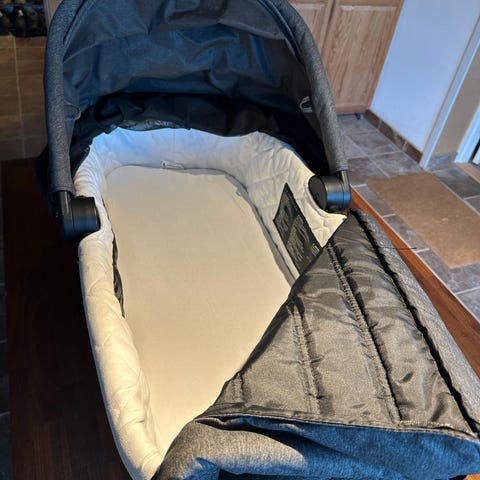 Det lille stykke stof yderst ved solskærmen folder ikke længere helt ud, men man kan fint bruge liften alligevel. Deraf den lave pris.