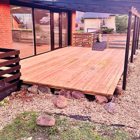 Vi rådgiver gerne om valg af træ og løsning, så terrassen passer til både brug og budget.