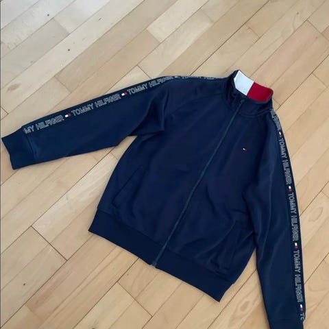 Hætte trøje med lynlås, Tommy Hilfiger, str. 176, Se albuerne på billede 2 og 3.